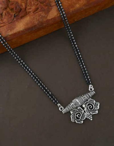 २. दसरा- दिवाळी या सणांनिमित्त सध्या आपल्या शहरातल्या लोकल बाजारात तसेच ऑनलाईन शॉपिंग साईटवर ऑक्सिडाईज प्रकारातले अनेक मंगळसूत्र उपलब्ध आहेत. खणाच्या साड्यांची क्रेझ होती तेव्हा फक्त साडीवर शोभणारे ठसठशीत ऑक्सिडाईज मंगळसूत्र मिळायचे.