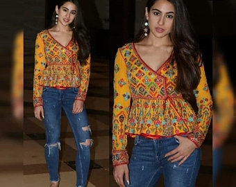 ५. आपल्या नेहमीच्या जीन्सवर अशा पद्धतीने दांडिया स्पेशल टॉप तुम्ही घेऊ शकता. साधारण ३०० रुपयांपासून पुढे ते टॉप मिळू शकेल.
