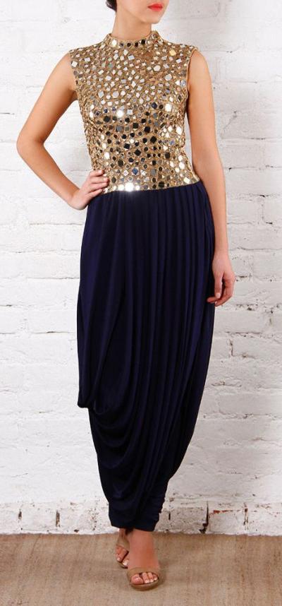 ८. असं आरशाचं वर्क असणारं किंवा ग्लिटरी टॉप आणि त्याच्याखाली धोती पँट असा पेहरावही दांडियासाठी छान दिसतो.