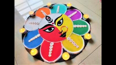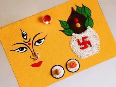 विशेष म्हणजे नवरात्रीच्या रांगोळीत तुम्ही सगळ्या रंगांचा वापर करू शकता.