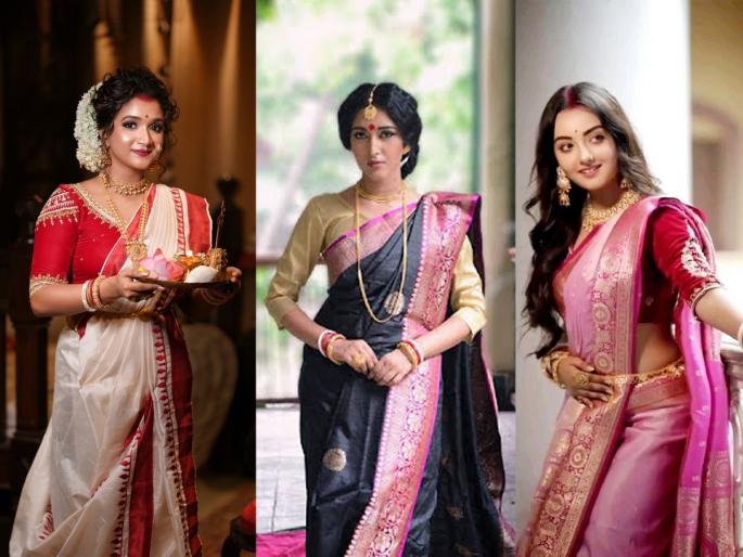 1 / 7नवरात्र म्हणजे उत्साह, आनंद आणि रंगाचा उत्सव. या काळात विविध रंगाच्या साड्या, दांडिया आणि परंपरा साजरा केल्या जातात. नऊ दिवसातील सगळ्यात महत्त्वाचा दिवस अर्थात दुर्गापूजा. दुर्गापूजेनिमित्त सगळीकडे उत्साह असतो. ही पूजा फक्त बंगालमध्येच नाही तर देशभरातली अनेक शहरांमध्ये मोठ्या उत्साहात साजरी केली जाते. ज्यामुळे महिला बंगाली पद्धतीच्या साड्या घालणे अधिक पसंत करतात. 2 / 7लाल आणि पांढऱ्या रंगाची साडी, कपाळावर मोठी बिंदी, पदराला सुंदर प्रकारे ड्रेसिंग केलेल. हे सर्व उत्सवाला आणखी खास बनवतात. यंदाच्या दुर्गापूजेला बंगाली पद्धतीची साडी नेसणार असाल तर या ५ टिप्स लक्षात ठेवा. 3 / 7बंगाली पद्धतीची साडी नेसताना ती पारंपरिकपणे लाल बॉर्डर असलेली पांढरी किंवा ऑफ- व्हाइट बेस साडी निवडायला हवी. कॉटन, सिल्क किंवा टॅसल साड्या बंगाली लूक पूर्ण करतात. 4 / 7या साड्यांच्या पदराला ड्रेपिंग करतात तो रुंद आणि सुंदरपणे खांद्यावर गुंडाळलेला असतो. ज्यामुळे याला पारंपरिक टच मिळतो. ड्रेपिंग करताना प्लेट्स व्यवस्थित बसलेल्या आहेत की, नाही हे तपासा. 5 / 7आपण साडी नेसल्यावर कपाळावर लाल मोठी, गोल बिंदी लावा. यामुळे आपला संपूर्ण मेकअप लूक छान दिसेल. तसेच यावर लाल किंवा गुलाबी रंगाची गडद बिंदी देखील छान दिसते. 6 / 7या साडीवर सोनेरी दागिन्यांचा सेट घालणे चांगले. मोठे कानातले, बांगड्या आणि नेकलेस आपल्याला शाही बंगाली लूक देतात. यासाठी आपल्याला हातभर बांगड्या आणि मोठे कानातले घालायला हवे. 7 / 7हेअरस्टाईलमध्ये आपण केसांचा बन बनवू शकतो. त्यावर जाईच्या फुलांनी किंवा लाल- पांढऱ्या फुलांनी सजवू शकतो. आपण यावर हेअरपिन लावून केसांच्या बनचे सौंदर्य आणखी वाढवू शकतो. मेकअपसाठी लाल लिपस्टिक आणि हलका डोळ्यांवर मेकअप करा.