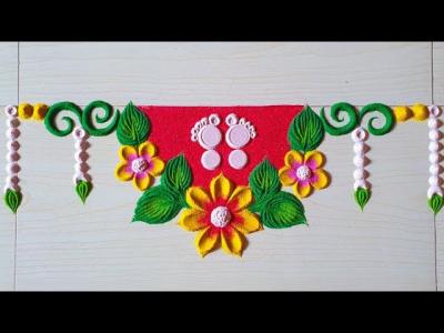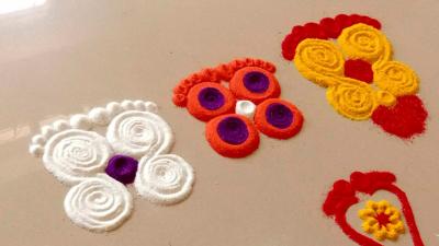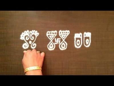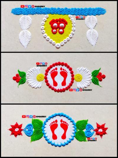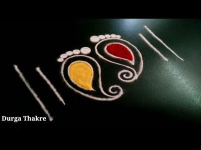याशिवाय तुम्ही खडूनं आधी पाऊलं काढून नंतर रांगोळी काढू शकता.