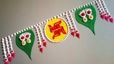 रांगोळीच्या मधोमध स्वास्तिकचे चिन्हसुद्धा शोभून दिसेल.