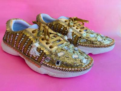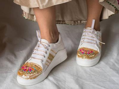 ५. आपण अशाप्रकारे अगदी बारीक छोट्या मण्यांचे वर्क असणारे स्नीकर्स शूज घालू शकता.
