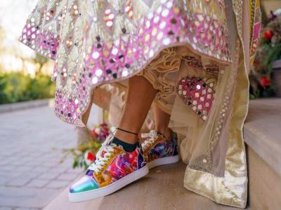 ३. स्नीकर्स शूज मध्ये अनेक वेगवेगळ्या रंगांचे, डिझाईन्सचे शूज आपल्याला बाजारांत अगदी सहज विकत मिळतील. आपल्या घागरा - चोलीवर असणाऱ्या वर्क प्रमाणे आपण स्नीकर्स शूज खरेदी करु शकतो.