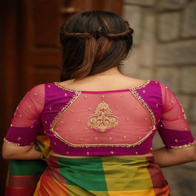 काठपदराच्या साड्यांवर ब्लाऊज शिवण्यासाठी नेट कपड्याचा अशा पद्धतीने वापर करता येऊ शकतो.