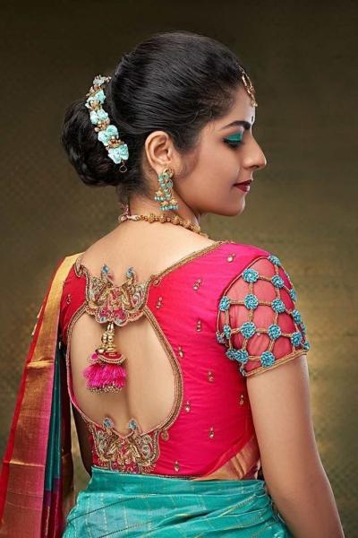 ब्लाऊजमध्ये तुम्ही तुमच्या आवडीच्या लेस लावू शकता आणि सुंदर डिजाईन्स बनवून घेऊ शकता.