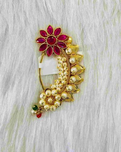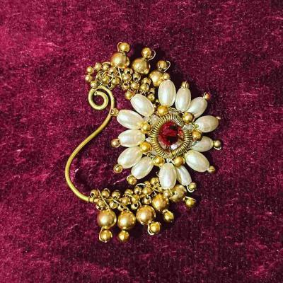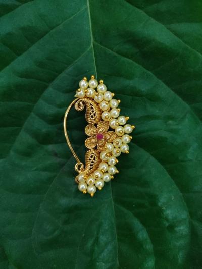 वरती ठसठशीत फुल आणि खाली मोत्यांचा वेल ही नथ तर बघताक्षणीच कोणालाही आवडेल अशी आहे.