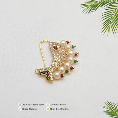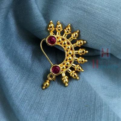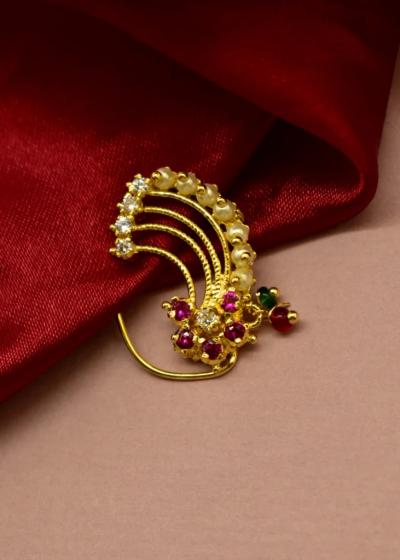 मासोळीचा आकार असणारी ही एक सुंदर नथ. स्टोन आणि मोती या दोन्हींमुळे ही नथ अतिशय आकर्षक दिसते.