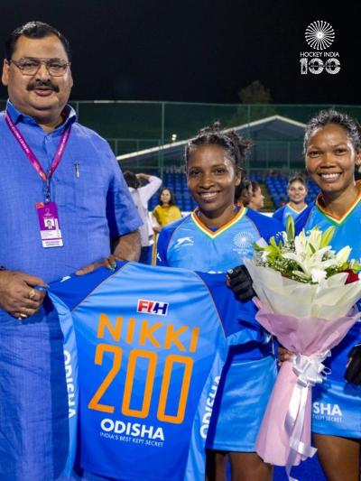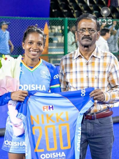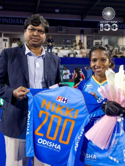 या ऐतिहासिक क्षणी हॉकी इंडियाचे सरचिटणीस भोलानाथ सिंह यांनी मैदानावरच निक्की प्रधानला 'NIKKI 200' लिहिलेली विशेष जर्सी देऊन सन्मानित केलं. सातत्यपूर्ण मेहनत आणि समर्पणाने भारतीय संघात आपली वेगळी ओळख निर्माण करणाऱ्या खेळाडूचा हा गौरव होता.