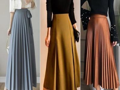 प्लीटेड स्कर्ट्स आणि टॉप दिसायला क्लासी आणि एलिगंट दिसतात. हे वेगवेगळ्या लांबीमध्ये आणि रंगांमध्ये येतात, ज्यामुळे ऑफिस लुकला एक फॉर्मल पण फॅशनेबल टच मिळतो.
