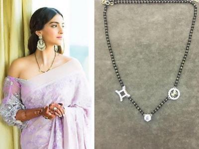 सोनम कपूर तिच्या गर्भधारणेवरुन चांगलीच चर्चेत आहे. तिचे बेबी बंपचे बरेच फोटो गेल्या काही दिवसांत आपल्यासमोर आले आहेत. २०१८ मध्ये आनंद आहुजाशी लग्न झालेल्या सोनमच्या मंगळसूत्राची किंमत ५५ लाख आहे. काळ्या मण्यांमध्ये मध्यभागी एक डायमंड असलेल्या या मंगळसूत्राला या दोघांच्या राशींची चिन्हे जोडण्यात आली आहेत. त्यामुळे या मंगळसूत्राचा लूक एकदम बदलला आहे.