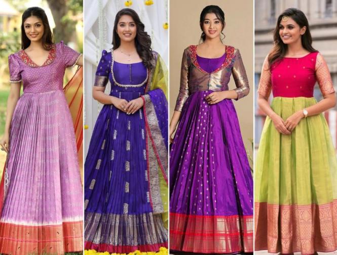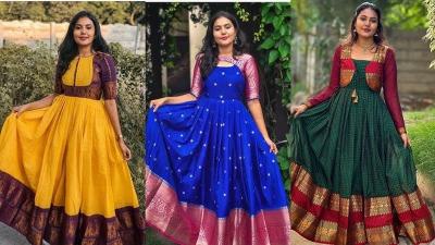 आपण भरजरी काठ असणाऱ्या साडीचा असा पारंपरिक किंवा टिपिकल स्टाईलचा अनाकरली ड्रेस शिवू शकता. जो सणवार, लग्नकार्य अशा प्रसंगी सुंदर लूक देतो. साडीच्या काठाचा वापर केल्यास ड्रेस चारचौघीत अधिकच उठून दिसतो.