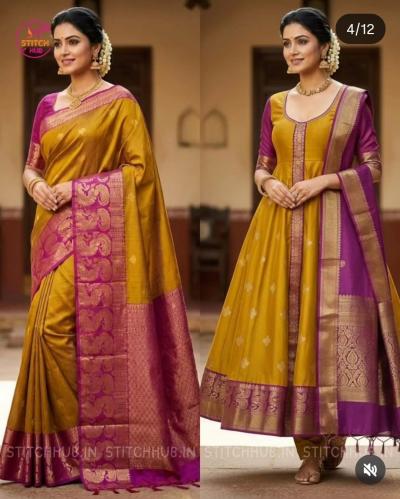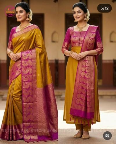 पारंपारिक काठपदराची साडी असो किंवा हलकी शिफॉन-जॉर्जेट, प्रत्येक साडीतून एक वेगळा आणि हटके ड्रेस शिवता येऊ शकतो. एका साडीपासून तयार करता येणारे वेगवेगळ्या प्रकारचे ड्रेस पॅटर्न, जे तुमच्या वॉर्डरोबला देऊ शकतात एक नवा आणि फ्रेश लूक...कपाटातील तुमच्या जुन्या साडीचा वापर करून तुम्ही कोणते ड्रेसचे ट्रेंडी पॅटर्न शिवू शकता ते पाहा...