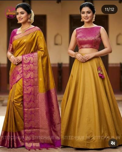 जुन्या हेव्ही साड्यांचा पुनर्वापर करण्यासाठी लेहेंगा हा सर्वात लोकप्रिय आणि सदाबहार पर्याय आहे. विशेषतः लग्नातील भरजरी साड्यांपासून बनवलेले लेहेंगे हे एखाद्या ब्रँडेड आउटफिटसारखे दिसतात. साडीची लांबी ५ ते ६ वार असल्याने लेहेंग्याला भरपूर 'कळ्या' किंवा मोठा घोळ देता येतो. साडीची मोठी बॉर्डर लेहेंग्याच्या खालच्या बाजूला लावल्यामुळे तो अधिक उठावदार दिसतो. साडीच्या ब्लाऊज पीसचा किंवा साडीच्या पदराच्या भागाचा वापर करून तुम्ही डिझायनर चोली शिवू शकता. पदराचा वापर केल्यास चोलीवर आपोआपच सुंदर वर्क येते. जर साडी नेट किंवा शिफॉनची असेल, तर साडीचाच एक भाग दुपट्टा म्हणून वापरता येतो. जर साडी सिल्कची असेल, तर तुम्ही त्यावर नेटचा कॉन्ट्रास्ट दुपट्टा घेऊन लूक पूर्ण करू शकता. लेहेंग्याला जास्त उठाव देण्यासाठी आतून 'कॅन-कॅन' (Can-can net) लावा. यामुळे तुमच्या जुन्या साडीचा लेहेंगा अगदी 'डिझायनर पीस' सारखा फुगीर आणि स्टायलिश दिसेल.