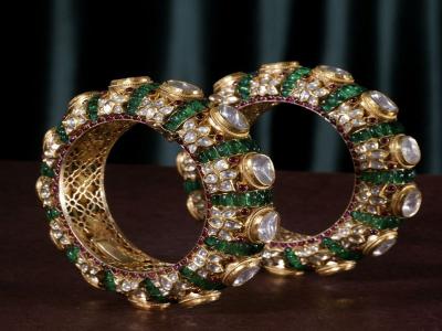 कुंदन पचेली ही सर्वात ट्रेंडी डिझाईन आहे. सोन्याच्या बेसवर चमकदार कुंदनचे काम केलेले असते. हे कडे लेहेंगा आणि भरजरी वस्त्रांवर खूप उठून दिसतात आणि हाताला भरगच्च लूक देतात.