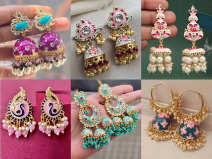 Meenakari Jhumka Latest Design Pattern : latest meenakari jhumka patterns : trending meenakari jhumka designs : लग्नसराईसाठी खास ट्रेंडमध्ये असलेले मीनाकारी झुमक्यांचे एक से बढकर एक सुंदर डिझाइन्स... ...