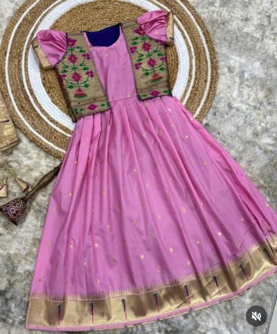 हल्ली लहान मुलींसाठी पेस्टल पिंक किंवा स्काय ब्लू रंगाच्या पैठणी गाऊनची मोठी क्रेझ आहे.