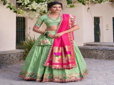 पैठणी साडीची सुंदर, देखणी बॉर्डर आणि झरीचा वापर करून आपण लेहेंगा किंवा लेहेंग्याच्या दुप्पट्याला एकदम खास आणि रॉयल लूक देऊ शकतो.