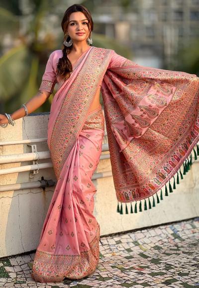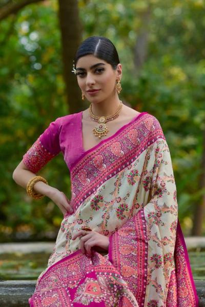 ही साडी अस्सल पश्मिना लोकर आणि सिल्क यांच्या मिश्रणातून तयार केली जाते. यामुळे साडीला एक वेगळीच चमक आणि मऊपणा येतो. (Pashmina Silk Saree For Wedding Season)