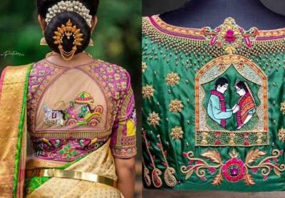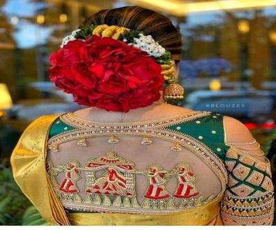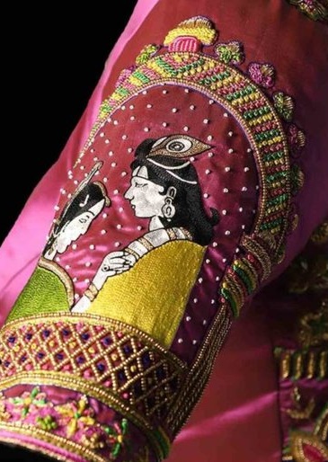 बाह्यांवरही अशा पद्धतीने काम केलं जातं आणि नवरीच्या ब्लाऊजला इतर सगळ्या ब्लाऊजपेक्षा वेगळं तयार केलं जातं.