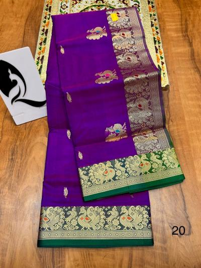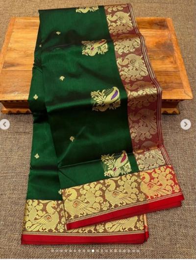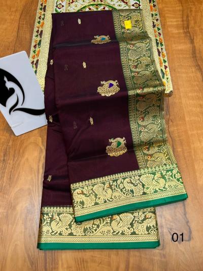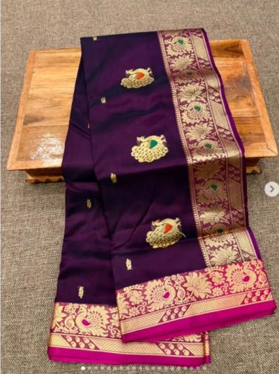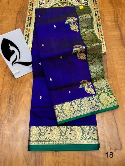 या साड्यांच्या पदरावर मोर, पोपट, कमळ आणि वेलींच्या अतिशय नाजूक आणि भरगच्च नक्षीकामामुळे त्या अधिक उठावदार दिसतात.