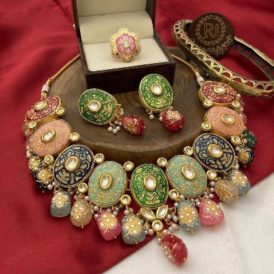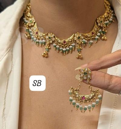 २. चोकर स्टाइल पोल्की नेकलेस :-