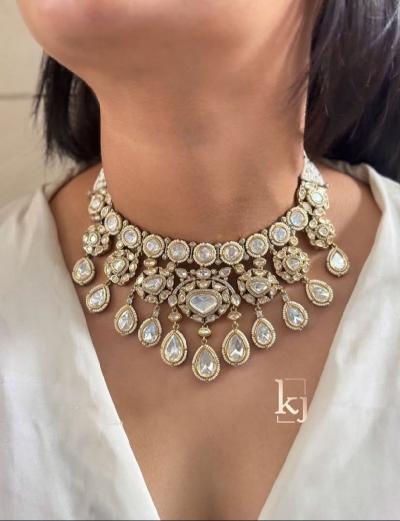 दोन किंवा तीन लेयर्स असलेला पोल्की नेकलेस लग्नसमारंभासाठी परफेक्ट असतो, यामुळे लूक अधिक ग्रँड दिसतो.