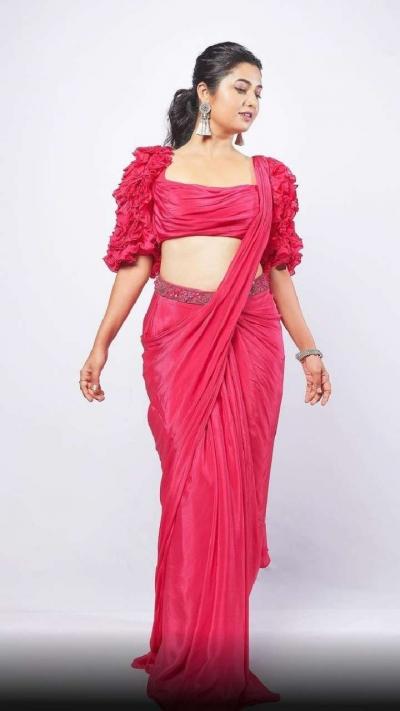 थ्री-फोर हॅण्ड्स, स्लिव्हजलेस, सिंगल स्ट्रिप अशा वेगवेगळ्या प्रकारच्या ब्लाऊजेसमध्ये प्राजक्ता दिसून येते.