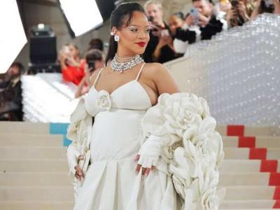 रिहाना ने २०२३ च्या मेटा गालामध्ये पांढऱ्या गुलाब सॅटिन गाऊनमध्ये बेबी बंप दाखवला. या गायिकेने गालाच्या रॅम्प वॉकवेवर आपल्या प्रेंग्नेंसीची घोषणा केली होती.