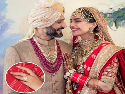 सोनम एक स्टायलिश अभिनेत्री म्हणून ओळखली जाते. सोनमने लग्नात घातलेले दागिने, कपडे आणि मंगळसूत्र या सगळ्याचीच चर्चा झाली होती. याबरोबरच तिने घातलेल्या अंगठीचीही चर्चा झाली होती. आनंद आहुजा याने सोनमच्या हातात घातलेली अंगठी उपस्थितांच्या चर्चेचा विषय बनली होती. या अंगठीची किंमत ९० लाख रुपये आहे.