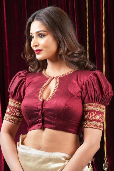 राउंड नेक पफ स्लीव्ह ब्लाउज देखील ट्रेण्डींग आहे. प्लेन साड्यांवर अशा प्रकारचे ब्लाउज शोभून दिसतील.