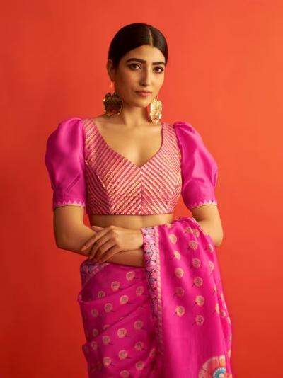 पफ स्लिव्हजच्या ब्लाऊजमध्ये प्लेन हात दिसणार नाहीत तर तुमचा खुलून दिसेल आणि दंडही जाड दिसणार नाहीत.