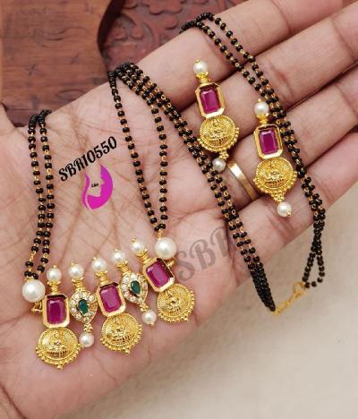 पारंपरिक पुतळा डिझाईन्ससोबत लाल - हिरव्या किंवा रंगीबेरंगी मण्यांचे कुंदन वर्क असेल तर मंगळसुत्रचा लूक अगदी चारचौघीत उठून दिसतो.