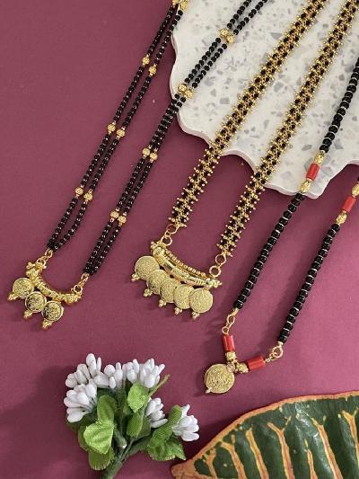 जर तुम्हाला मंगळसूत्रात फारसे काळे मणी नको असतील आणि मोजक्याच्या मण्यांसोबत फक्त भरीव आणि रेखीव अनेक पुतळ्या हव्या असतील तर अशा डिझाईन्सच्या मंगळसूत्राची तुम्ही निवड करू शकता.