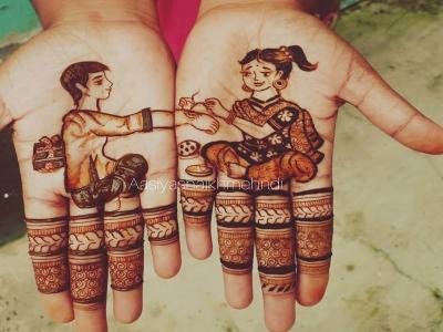 भावाबहिणीचं प्रेम सांगणारी ही आणखी एक सुंदर मेहेंदी. ही मेहेंदी काढायची असेल तर तुम्हाला बराच वेळ द्यावा लागेल एवढं नक्की. कारण त्यातले बारकावे जमले तरच ती मेहेंदी खुलेल.