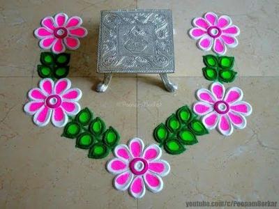 जर आपल्याकडे रांगोळीचे रंग उपलब्ध नसतील तर आपण फक्त पांढऱ्या रंगाच्या रांगोळीच्या मदतीने सोपी आणि झटपट अशी फुलांची रांगोळी काढू शकतो.