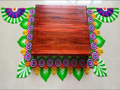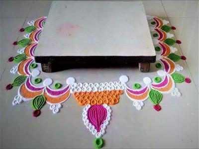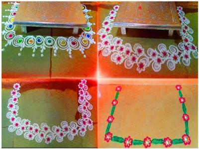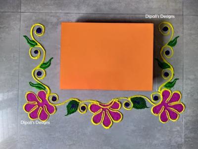 जर आपल्याला अधिक सुंदर व आकर्षक सजावट करायची असेल तर आपण असे वेगवेगळ्या डिझाइन्सचे पाठ ठेवून त्याभोवती देखील रांगोळी काढू शकता.