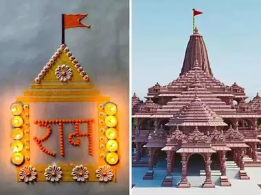 राम मंदीराप्रमाणे कलाकृती बनवून आजूबादूला दिवे लावून तुम्ही सुंदर मंदिराचे रूप साकारू शकता.