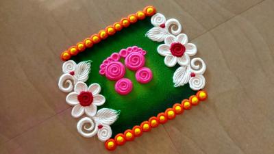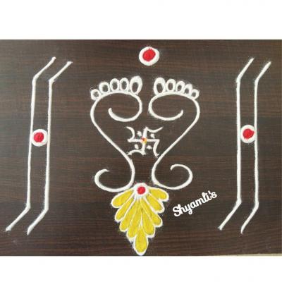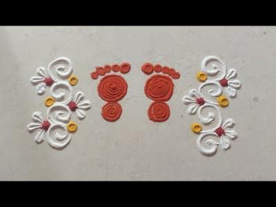 घराच्या मुख्य दारापाशी जर गौरीच्या सणादरम्यान रांगोळी काढायची असेल तर हे एक डिझाईन अतिशय सुंदर दिसेल.