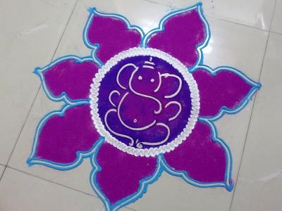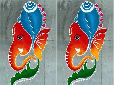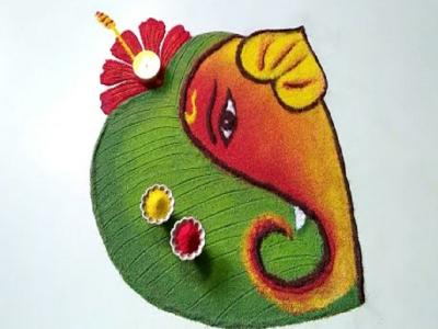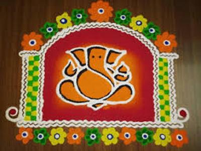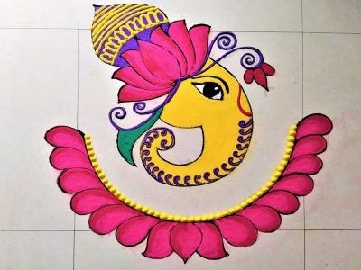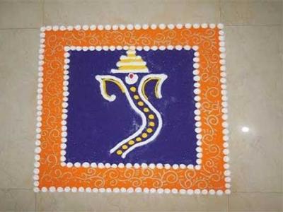 बाजूने नक्षीदार बॉर्डर आणि मध्यभागी गणपतीची सोंड आणि कान असे प्रतिकात्मक काढले तरीही ते दारासमोर किंवा बाप्पासमोर फार सुरेख दिसते.
