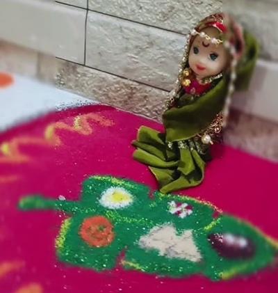 तुम्ही जर एखाद्या नवरीला केळवणासाठी बोलावणार असाल तर तिच्यासाठी अशी बाहुली ठेवून रांगोळी काढून सजावट करू शकता.