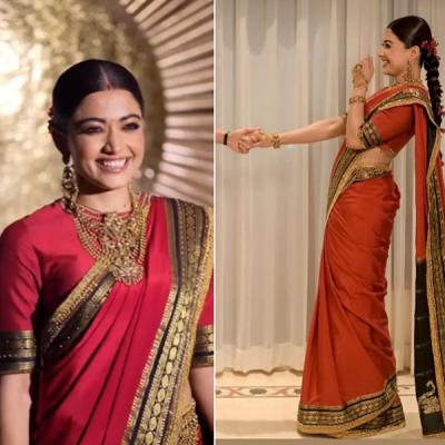 रश्मिका मंदानाची लाल साडी आणि काळया काठांना सोन्याची जर, पाहा या विलक्षण सुंदर साडीला काय म्हणतात..