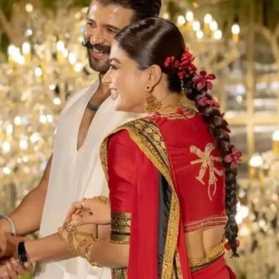 रश्मिका मंदाना आणि विजय देवरकोंडा यांचा विवाहसोहळा जसा थाटामाटात पार पडला, तेवढ्याच शाही थाटात त्या दोघांचं रिसेप्शनही झालं. यावेळी रश्मिकाने नेसलेल्या लाल रंगाच्या साडीचीही खूप चर्चा झाली...(Rashmika Mandana's red mysore silk saree for reception)