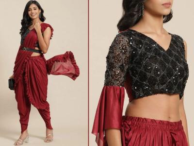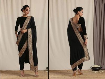 Ready to Wear Pant Style Saree Designs : ready to wear pant style sarees : pant style saree design : pre draped pant style saree : ready to wear saree with pants : साडी नेसायची झंझट विसरा, रेडी टू वेअर पँट स्टाईल साड्यांची बदलती फॅशन - पँट आणि साडीचे परफेक्ट फ्युजन...