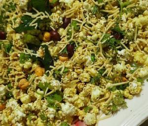दुसरा पदार्थ म्हणजे लाह्यांचा चिवडा. लाह्या एका मोठ्या भांड्यात घाला. कढईमध्ये तेल, मोहरी, हिंग, कडिपत्ता, शेंगदाणे, खोबऱ्याचे काप, हिरव्या मिरच्यांचे तुकडे, हळद असं सगळं घालून फोडणी करून घ्या. ही फोडणी लाह्यांवर घाला आणि चिमूटभर साखर घालून सगळं व्यवस्थित हलवून घ्या. लाह्यांचा खमंग चिवडा तयार.