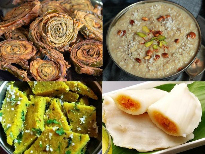 1 / 8श्रावण महिना म्हटलं की येतात ते अनेक सण. या महिन्यांत आपण वेगवेगळ्या प्रकारचे सण अत्यंत आनंद साजरे करतो. श्रावण महिन्यात सगळ्यात पहिला येणारा सण म्हणजे नागपंचमी. नागपंचमीला नाग देवतेची पूजा करुन वेगवेगळ्या प्रकारच्या पारंपरिक पदार्थांचे नैवेद्य दाखवले जातात. श्रावणात येणाऱ्या सणादरम्यान प्रत्येक घरात अनेक पारंपरिक पदार्थांची रेलचेल असते. नागपंचमी सणादिवशी काही कापायचे, चिरायचे नसते अशी फार पूर्वीपासूनची प्रथा आहे म्हणूनच या दिवशी पदार्थ वाफवून किंवा उकडवून केले जातात. नागपंचमीच्या दिवशी गव्हाची खीर, अळूवड्या, पुरणाचे दिंड, पाटवड्या असे अनेक पारंपरिक पदार्थ केले जातात त्यापैकीच काही पारंपरिक पदार्थ पाहूयात.2 / 8कोकणात नागपंचमीला हमखास बनवला जाणारा पदार्थ म्हणजे हळदीच्या पानांतील पातोळ्या. या पातोळ्या थोड्याफार मोदका प्रमाणेच केल्या जातात. मोदकाप्रमाणेच तांदुळाच्या पिठाचे आवरण तयार करुन त्यात गूळ, ओल्या खोबऱ्याचे सारण भरुन या पातोळ्यांना करंजीसारखा आकार दिला जातो. नंतर या पातोळ्या हळदीच्या पानांत गुंडाळून वाफवून घेतल्या जातात. या गरमागरम पातोळ्यांवर तुपाची धार सोडून ७ ते ८ पातोळ्या फस्त केल्याशिवाय आपला जीव शांत होत नाही. 3 / 8पाटवड्या हा विदर्भ, मराठवाडा, खान्देश, अशा महाराष्ट्राच्या विविध भागात वेगवेगळ्या पद्धतीने केला जाणारा खास पदार्थ आहे. पाटवड्या या पाटवडीच्या रस्स्यासोबत खाल्ल्या जातात परंतु नागपंचमीला या पाटवड्या नुसत्याच खाल्ल्या जातात. बेसन पिठात वेगवेगळ्या प्रकारचे मसाले घालून ताकात हे पीठ कालवून मग त्याला जिरे, मोहरीची फोडणी देत हे पीठ शिजवून घ्यावे. त्यानंतर या पिठाच्या वड्या पाडून घ्याव्यात. बारीक चिरलेली कोथिंबीर, ओल्या खोबऱ्याचा किस भुरभुरवून या पाटवड्या खाण्यासाठी सर्व्ह कराव्यात. 4 / 8पुरणाचे दिंड हा प्रकार थोडाफार पुरणपोळी सारखाच असतो. पुरणाचे दिंड करताना पुरणपोळीचे जसे पुरण तयार करून घेतो तसेच पुरण तयार करुन घ्यावे. त्यानंतर चपातीसाठी कणीक भिजवतो तशी कणीक भिजवून घ्यावी. कणकेच्या गोल पुऱ्या करुन त्यात हे पुरण भरुन चारही बाजुंनी बंद करुन नंतर मोदकाप्रमाणेच स्टीमरमध्ये ठेवून वाफवून घ्यावेत. गोड पुरणाचे दिंड खाण्यासाठी तयार आहेत. 5 / 8 सण म्हटलं की आपण गोडाधोडाचे अनेक प्रकार करतोच. खीर ही त्यापैकीच एक. नागपंचमीला आपण विशेष गव्हाची खीर तयार करतो. गहू भिजत घालून त्यानंतर दुसऱ्या दिवशी त्याची पेस्ट तयार करुन त्यात जायफळ, वेलची पूड घातली जाते. एवढेच नव्हे तर वेगवेगळ्या प्रकारचे ड्रायफ्रुटसचे काप घालून आपण ही खीर आधी चविष्ट करु शकतो. 6 / 8नागपंचमी निमित्त खास अळूवड्यांचा बेत केला जातो. अळूच्या पानांना चिंच - गूळ, ब