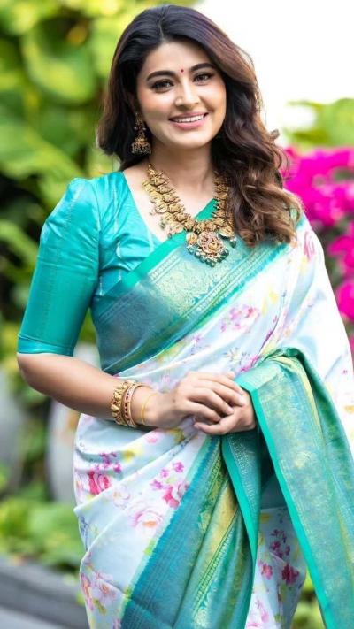 आकाशी रंगाच्या ब्लाऊजवर तुम्ही पांढरी साडी नेसू शकता.