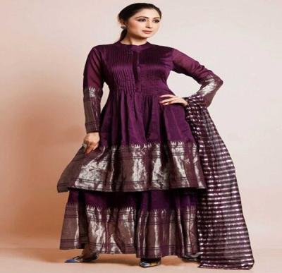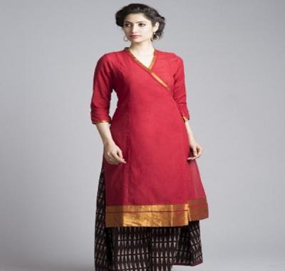 अंगरखा प्रकारातला कुर्ताही खूप छान दिसतो. साडीच्या काठांचा सुंदर वापर कुर्त्यामध्ये करता येतो.