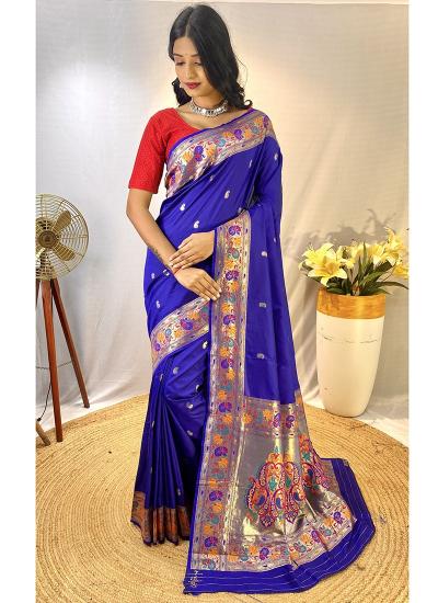 कलांजली पैठणी, मुनिया पैठणी, येवला पैठणी, अशा बऱ्याच पैठणीच्या प्रकारात तुम्हाला निळ्या रंगाची साडी उपलब्ध होईल.